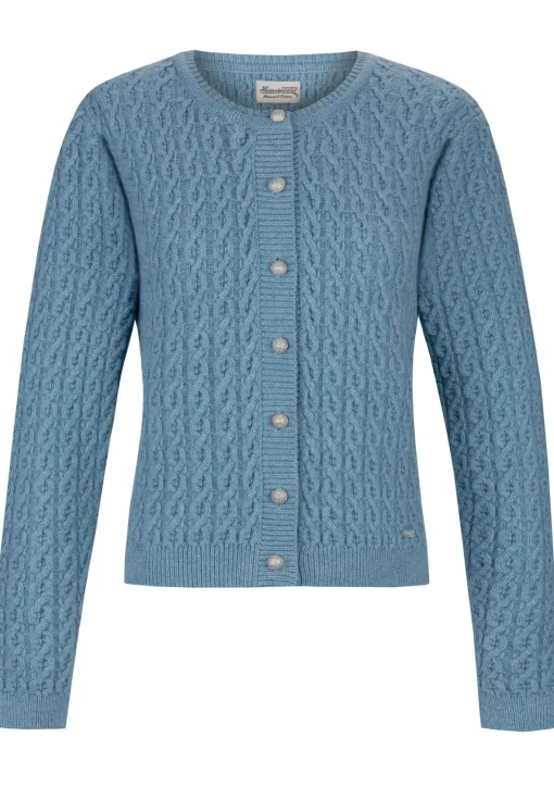 Trachten Strickjacke Sophia von Heimatgwand. Die kurze Jacke bekommt durch die kuschelige Wollmischung und dem klassischen Zopfmuster den typischen Trachten Look. Sie ist mit aufwendigen Knöpfen in altsilber verziert und legt den Fokus auf Tradition. Die Strickjacke ist angenehm zu tragen, vielseitig kombinierbar und passt gut zu deinem Lieblingsdirndl.