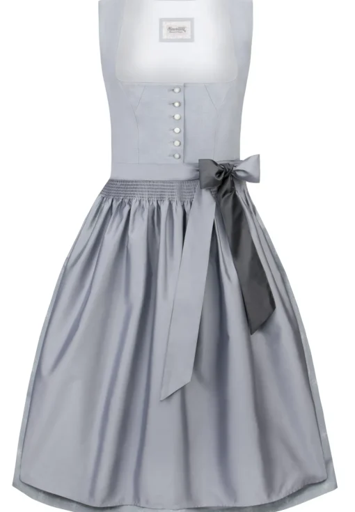 Dirndl Audrey von Heimatgwand in hellgrau. Dieses Modell sorgt für einen gelungenen Auftritt. Das Mieder des sommerlichen Dirndls ist aus einem hochwertigen Leinenstoff gefertigt. Der Münchner Schnitt passt perfekt zu diesem zeitlosen Dirndl. Die ausgefallenen Perlmutt Knöpfe unterstreichen den besonderen Trachten Look. Der pflegeleichte, bedruckte Rock aus Baumwolle und die farblich passende Schürze runden das traditionelle Modell gekonnt ab. Unser Model trägt die Dirndlbluse B-5070 in weiß.