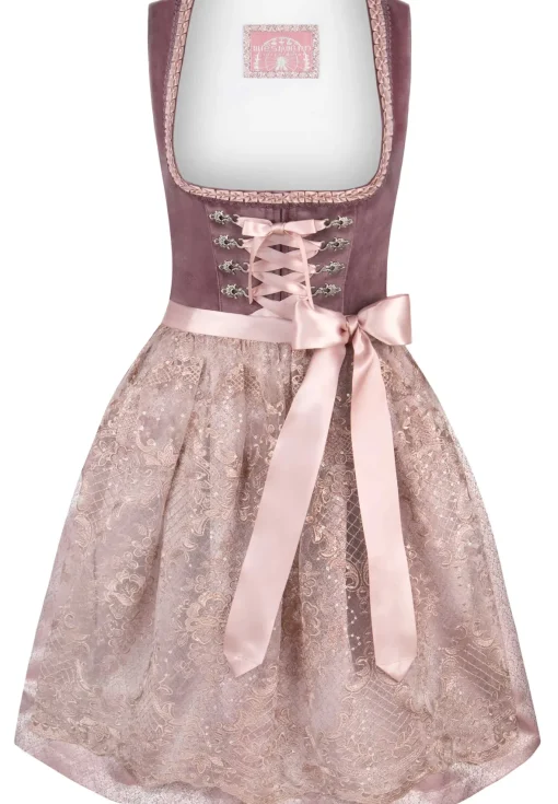 Dirndl Loredana von Wiesnwuid überzeugt durch sein ausdrucksstarkes Design mit exklusivem, hochwertigem Samt und liebevollen Details. Der gerade Ausschnitt zaubert ein schönes Dekolleté. Für den perfekten Auftritt sorgt das aufwendig gearbeitet Froschmaul mit Zierborte sowie die trachtigen Miederhaken. Die Schnürung mit den kontrastfarbigen Satinbändern unterstreicht den femininen Look. Die hochwertige, farblich abgestimmte Spitzenschürze rundet das Gesamtbild gekonnt ab. Wir empfehlen passend dazu: Bei Farbe aubergine die Bluse Selina in creme, bei Farbe salbei die Bluse Kensy in creme, bei Farbe anthrazit die Bluse Marita in weiß und bei Farbe taupe die Bluse Carole in creme.