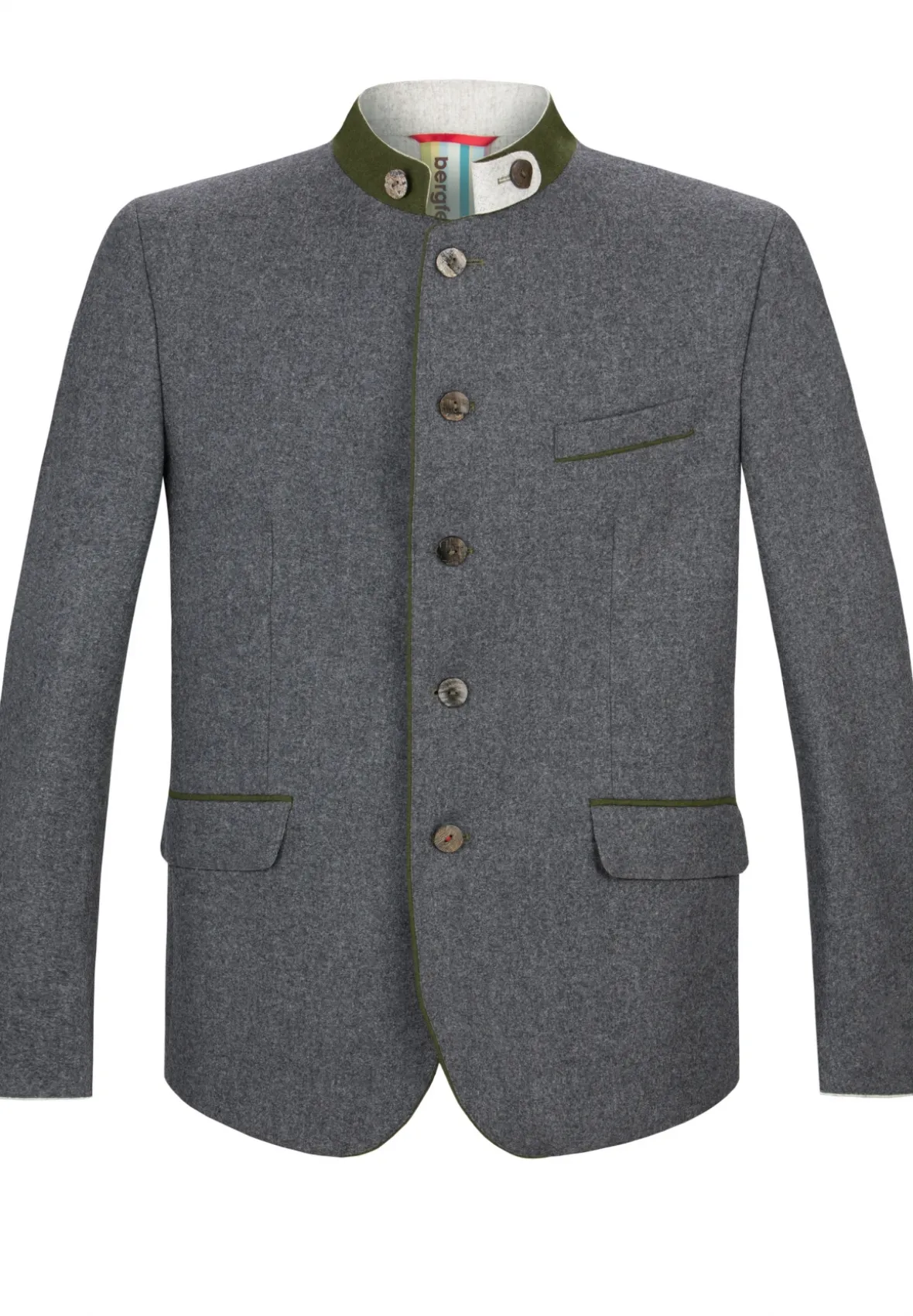Tauchen Sie ein in die rustikale Eleganz des Trachtensakkos Luciano von Bergfeuer. Dieser modische Trachtenjanker wurde aus einem hochwertigen melierten Loden gefertigt und überzeugt durch seinen modernen Look. Die klassische, gerade Schnittführung garantiert nicht nur eine ausgezeichnete Passform, sondern auch einen angenehmen Tragekomfort. Der farblich abgestimmte etwas höhere Stehkragen und die Paspel setzen markante Akzente und unterstreichen das charakterstarke Design dieses Trachtenstücks. Rustikale Hornknöpfe, kunstvoll verarbeitet, runden das edle Erscheinungsbild gekonnt ab und betonen die Verbundenheit zur Tracht. Entdecken Sie mit dem Janker Luciano, aus der Bergfeuer Kollektion, die Symbiose aus Tradition und Moderne. Qualität die auf Jahre begleitet.