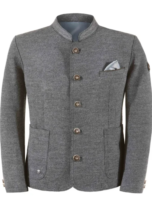 Trachtensakko Wolfgang von Stockerpoint Classics. Der modische, legere Trachtenjanker bekommt durch die leichte, melierte Loden Qualität traditionelle Akzente. Echte Hornknöpfe und ein filigran bestickter Stehkragen runden das Gesamtbild gekonnt ab. Die offen verarbeiteten Kanten unterstreichen gekonnt das modische Design. Die klassische, gerade Schnittführung mit aufgesetzten Taschen garantiert eine sehr gute Passform und einen angenehmen Tragekomfort. Rustikale Hornknöpfe runden das edle Erscheinungsbild gekonnt ab. Das Sakko ist der ideale Kombipartner zu unseren Lederhosen und zur Jeans.