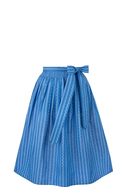 Dirndlschürze Claire für Damen von Stockerpoint. Die gestiftelte Schürze aus pflegeleichter, bedruckter Baumwolle ist mit typisch traditionellen Streifenmustern verziert. Die Gesamtlänge beträgt 70 cm und ist der perfekte Kombipartner für alle modernen und klassischen Dirndl. Passend zu unseren Dirndlmodellen Adele, Elsa, Zita, Odette, Daphne, Dakota und Lauryin.