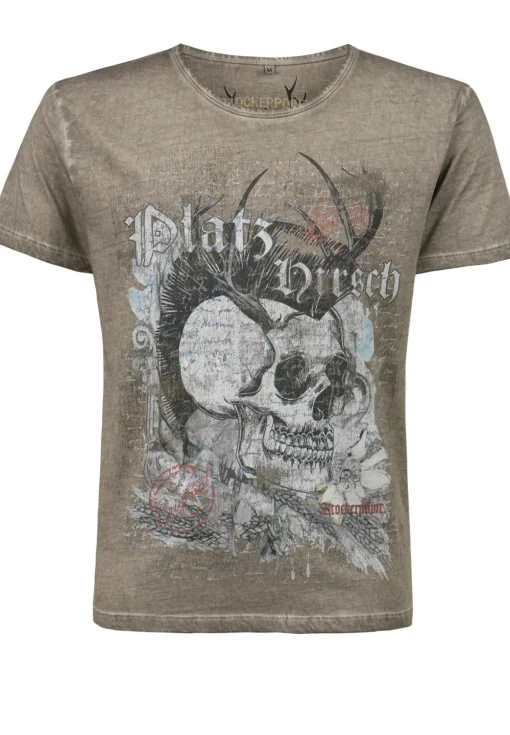 T-Shirt Bruno von Mountain Rocker. Das im „Comfort-Fit“ geschnittene Trachtenshirt in hochwertiger Baumwoll-Qualität überzeugt durch den angesagten Print mit dem Schriftzug „Platzhirsch“. Für die coole Optik sorgt die trendige „Used washed Optik“ und setzt das stylische Designmotiv perfekt in Szene. Der aufwändig verarbeitete Rundhals-Ausschnitt sorgt zusätzlich für den einzigartigen Look. Das Shirt lässt sich lässig zu Lederhose und zur Jeans tragen und ist ein unverzichtbares Statement für coole Typen.