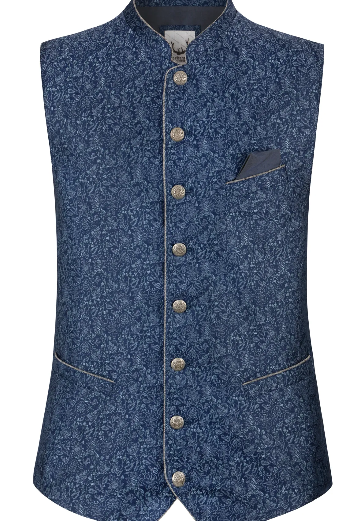 Trachtenweste Edward von Stockerpoint Classics. Die klassische Weste aus hochwertig gewebten Strukturstoff in Leinen ist der Klassiker unter den Trachtenwesten. Der Stehkragen und die farblich abgestimmten Paspel sind aus melierten Leinenstoff und prägen den unverwechselbaren Stil. Die klassische, gerade Schnittführung garantiert eine sehr gute Passform und einen angenehmen Tragekomfort. Der Rücken ist ebenfalls aus meliertem Leinen gefertigt, dadurch lässt sich diese trendige Trachtenweste sehr gut zu einem Trachtenhemd und einer klassischen Lederhose kombinieren. Geprägte Kugelknöpfe in altsilber runden das edle Erscheinungsbild gekonnt ab. Die Trachtenweste ist der ideale Kombipartner zu unseren traditionellen Trachtenhemden und Lederhosen. Die Trachtenweste erzeugt durch das exklusive Design den traditionellen Look.