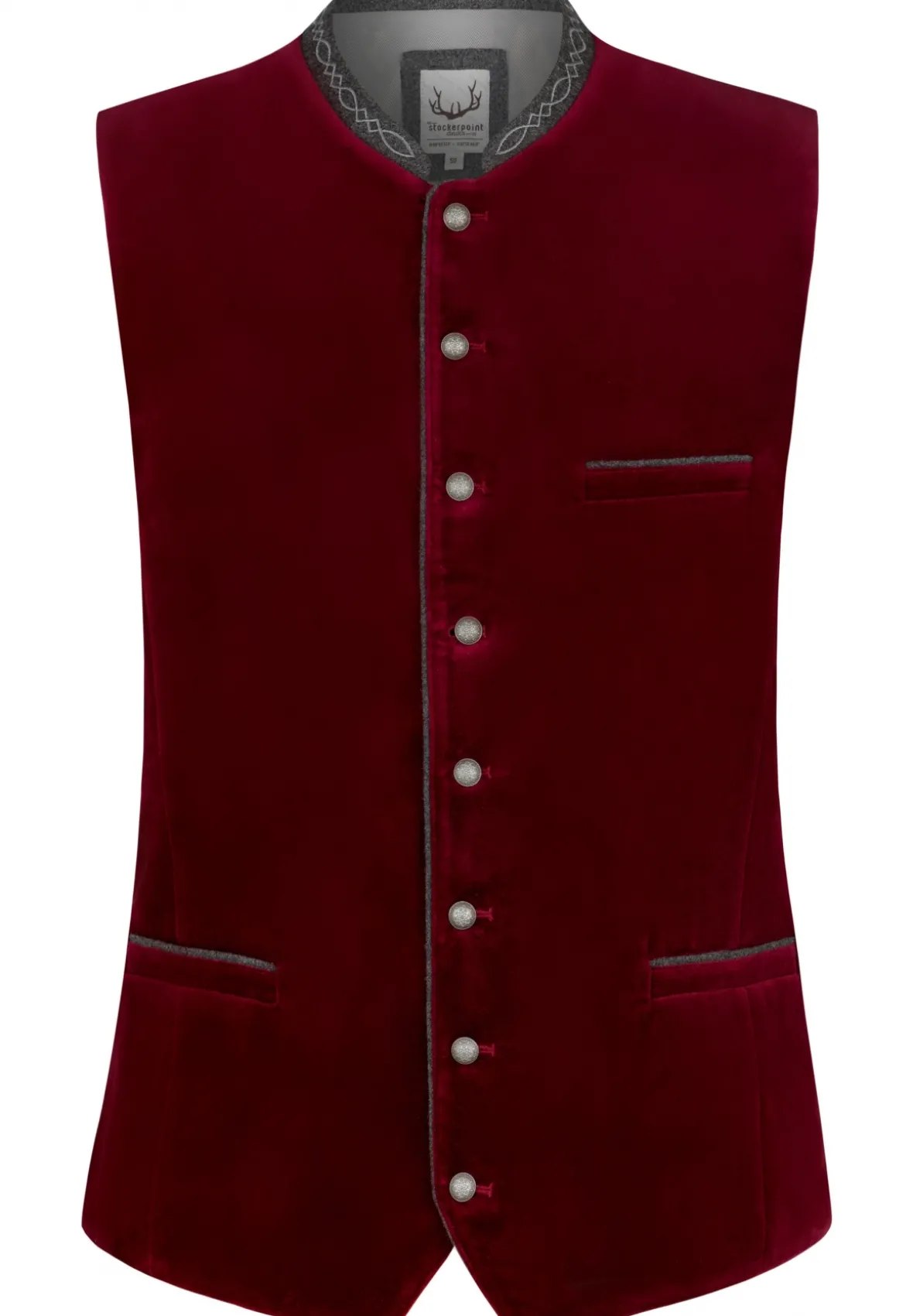 Trachtenweste Lorenzo von Stockerpoint Classics. Die klassische Weste aus hochwertigem Baumwollsamt ist der Klassiker unter den Trachtenwesten. Der Stehkragen ist aus hochwertigem, dezent bestickten Lodenstoff gearbeitet und prägt den unverwechselbaren Stil. Farblich abgestimmte Paspel unterstreichen das traditionelle Design. Die klassische, gerade Schnittführung garantiert eine sehr gute Passform und einen angenehmen Tragekomfort. Der Rücken ist aus einem exklusiven, schwarz gestreiften Jacquardstoff gefertigt und lässt sich mit einem Riegel verstellen. Geprägte Kugelknöpfe aus altsilber runden das edle Erscheinungsbild gekonnt ab. Die Trachtenweste ist der ideale Kombipartner zu unseren traditionellen Trachtenhemden und Lederhosen. Alles neu und doch ein Stück Heimat.