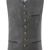Trachtenweste Sirius von Stockerpoint Classics. Die traditionelle Weste ist aus einer hochwertigen melierten Lodenqualität gefertigt. Die klassische, gerade Schnittführung garantiert eine sehr gute Passform und einen angenehmen Tragekomfort. Harmonisch abgestimmter, bestickter Stehkragen und Paspel unterstreichen das besondere Design. Der Rücken ist aus einem exklusiven, schwarzen Baumwollstoff gefertigt und lässt sich mit einem Riegel verstellen. Rustikale Hornknöpfe runden das edle Erscheinungsbild gekonnt ab. Die Trachtenweste ist der ideale Kombipartner zu unseren Lederhosen und Trachtenwesten und prägen den klassischen Trachtenlook.